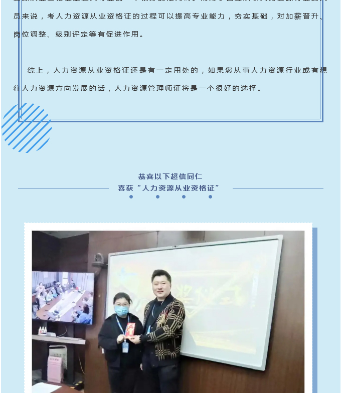 嘉獎 | 超信國際員工喜獲人力資源從業資格證