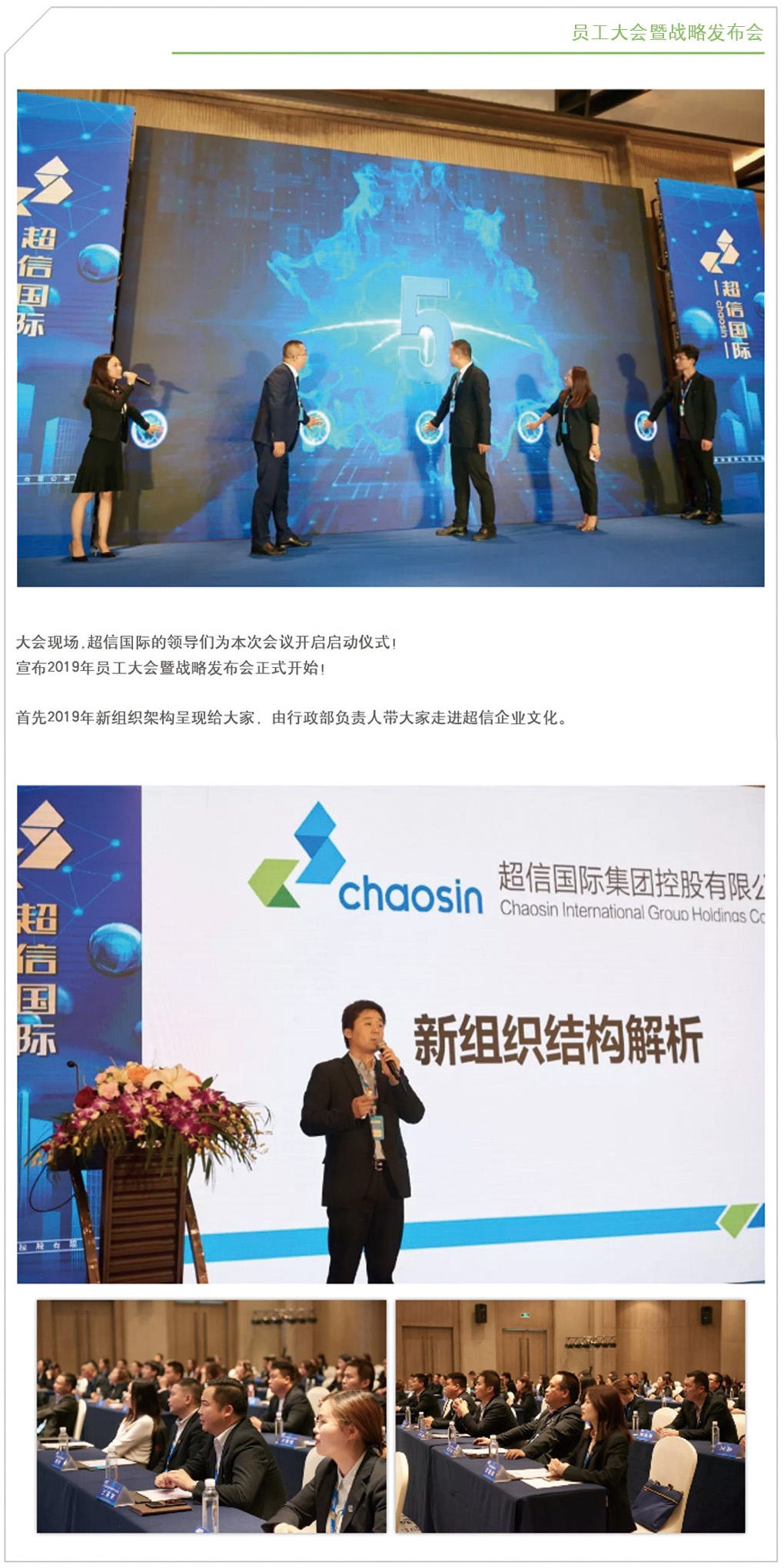 2019年4月26日,主題“繪藍圖,齊跨越,創輝煌”的超信國際員工大會暨戰略發布會在浙江安吉順利舉行,全體員工相聚在這里,拉開了大會的序幕。