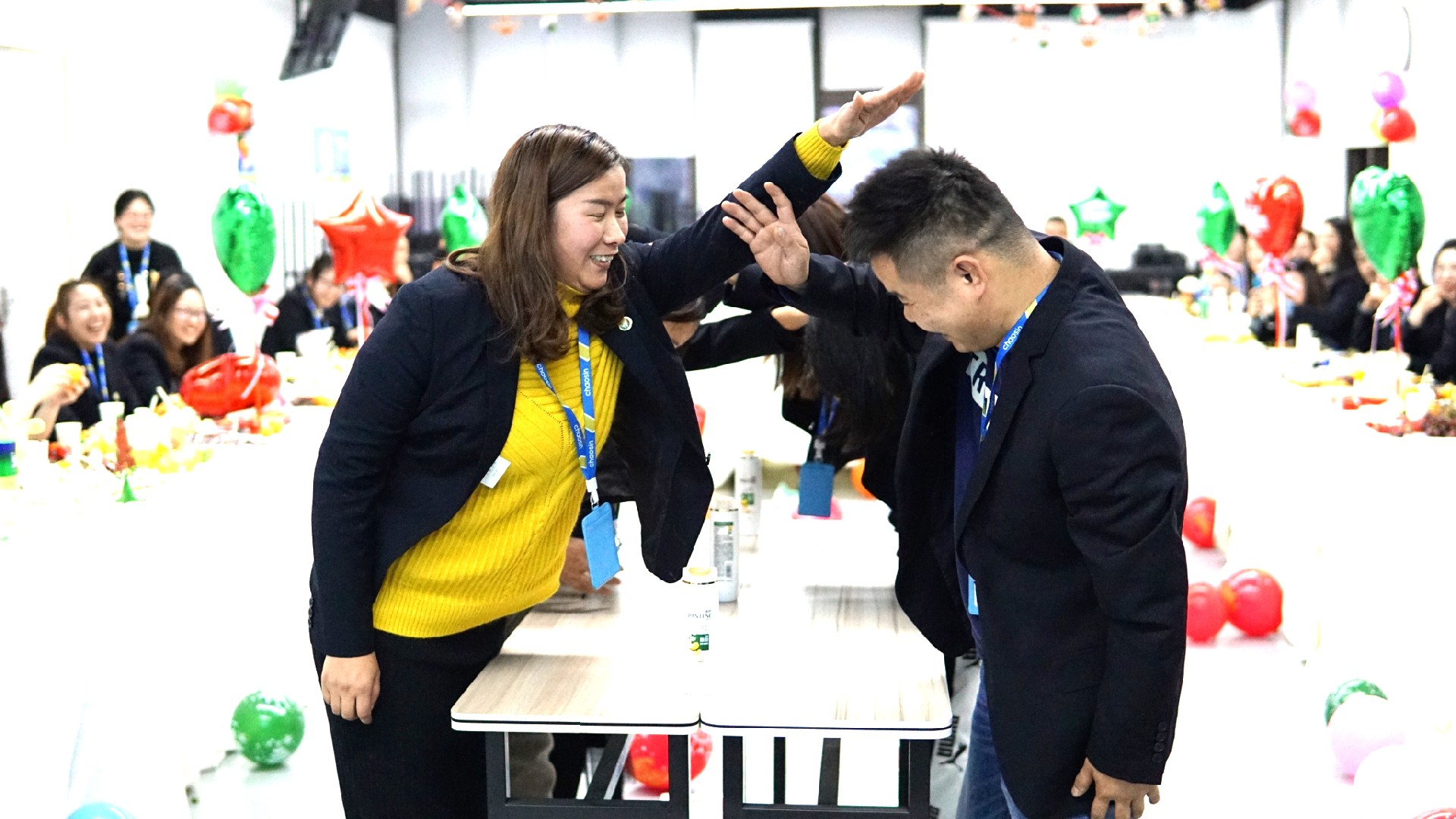 雖然游戲有小小的懲罰,但是大家還是玩的不亦樂乎,不時傳來陣陣笑聲和掌聲。現場好不熱鬧。